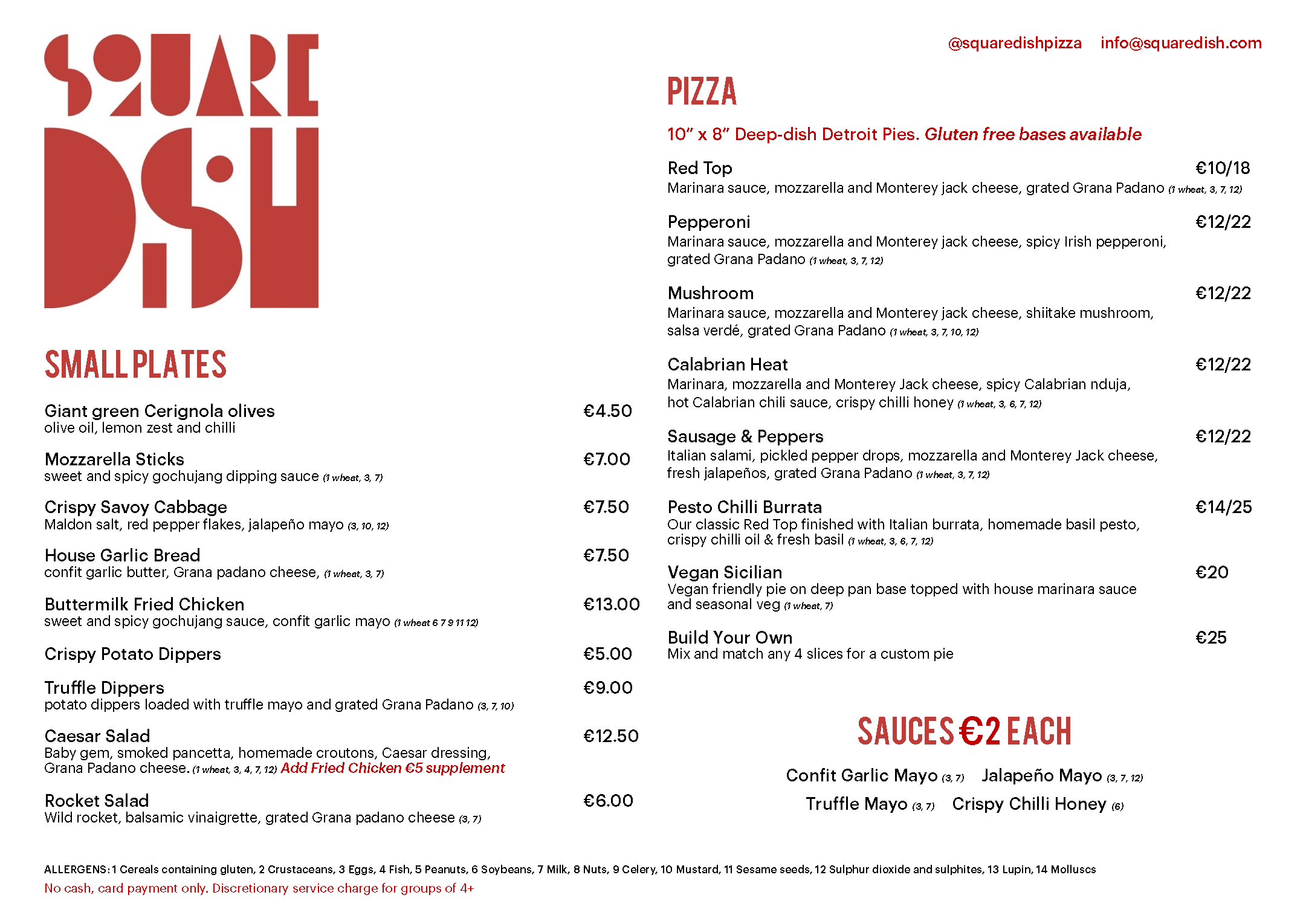 Delicious, light and crispy, deep pan pizzas at 25 St Stephen’s Green, Dublin.