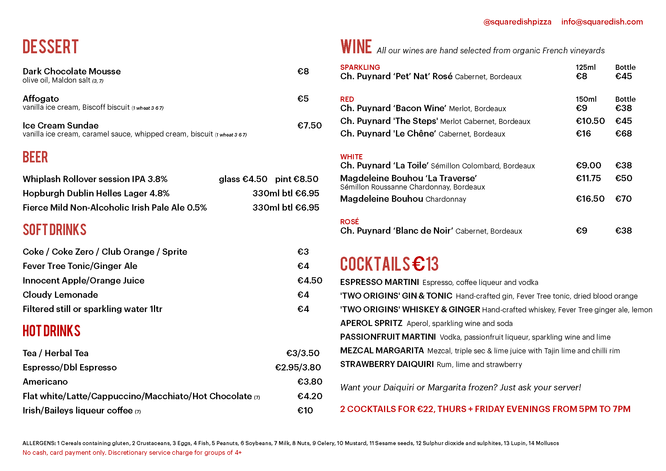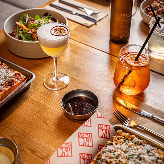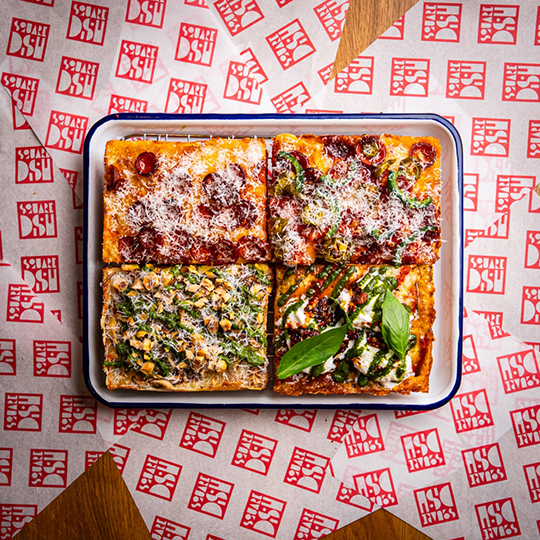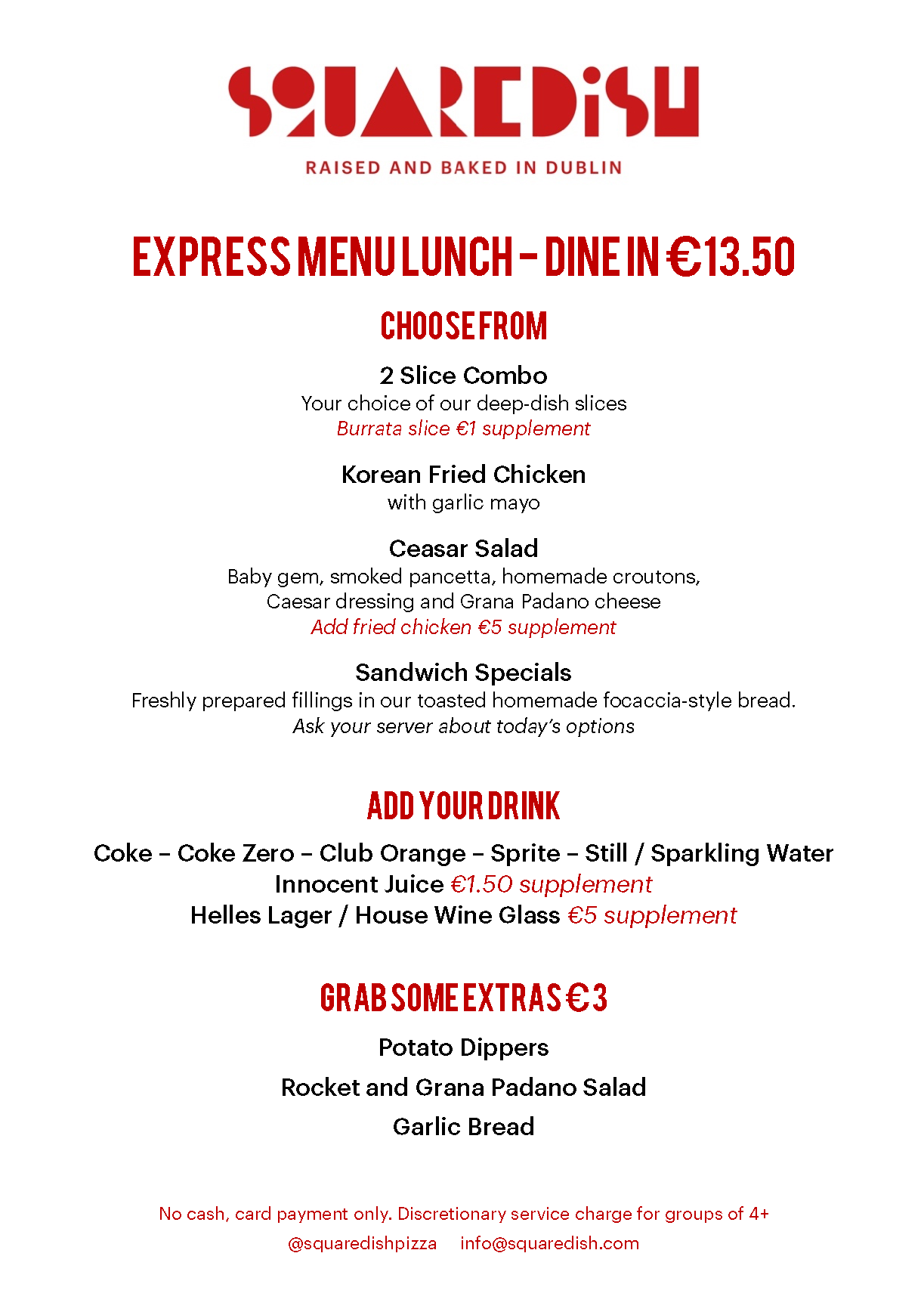 Delicious, light and crispy, deep pan pizzas at 25 St Stephen’s Green, Dublin.