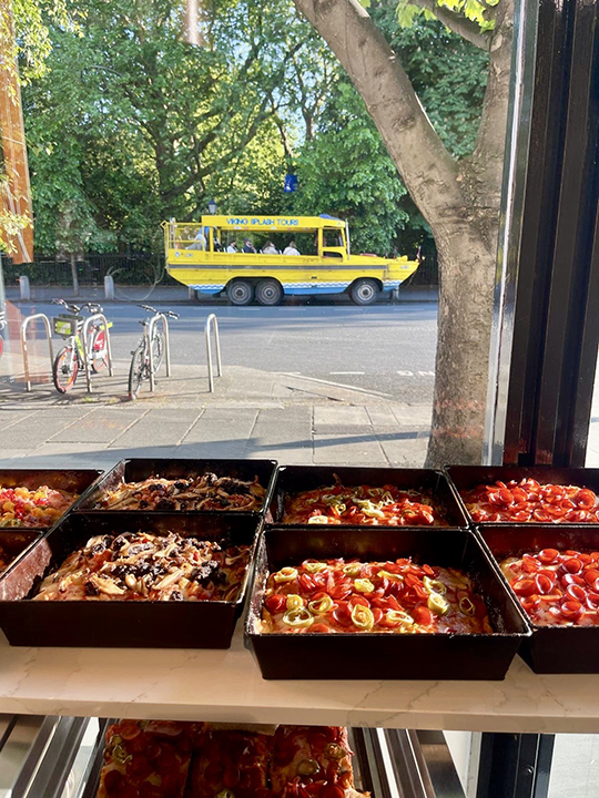 Delicious, light and crispy, deep pan pizzas at 25 St Stephen’s Green, Dublin.